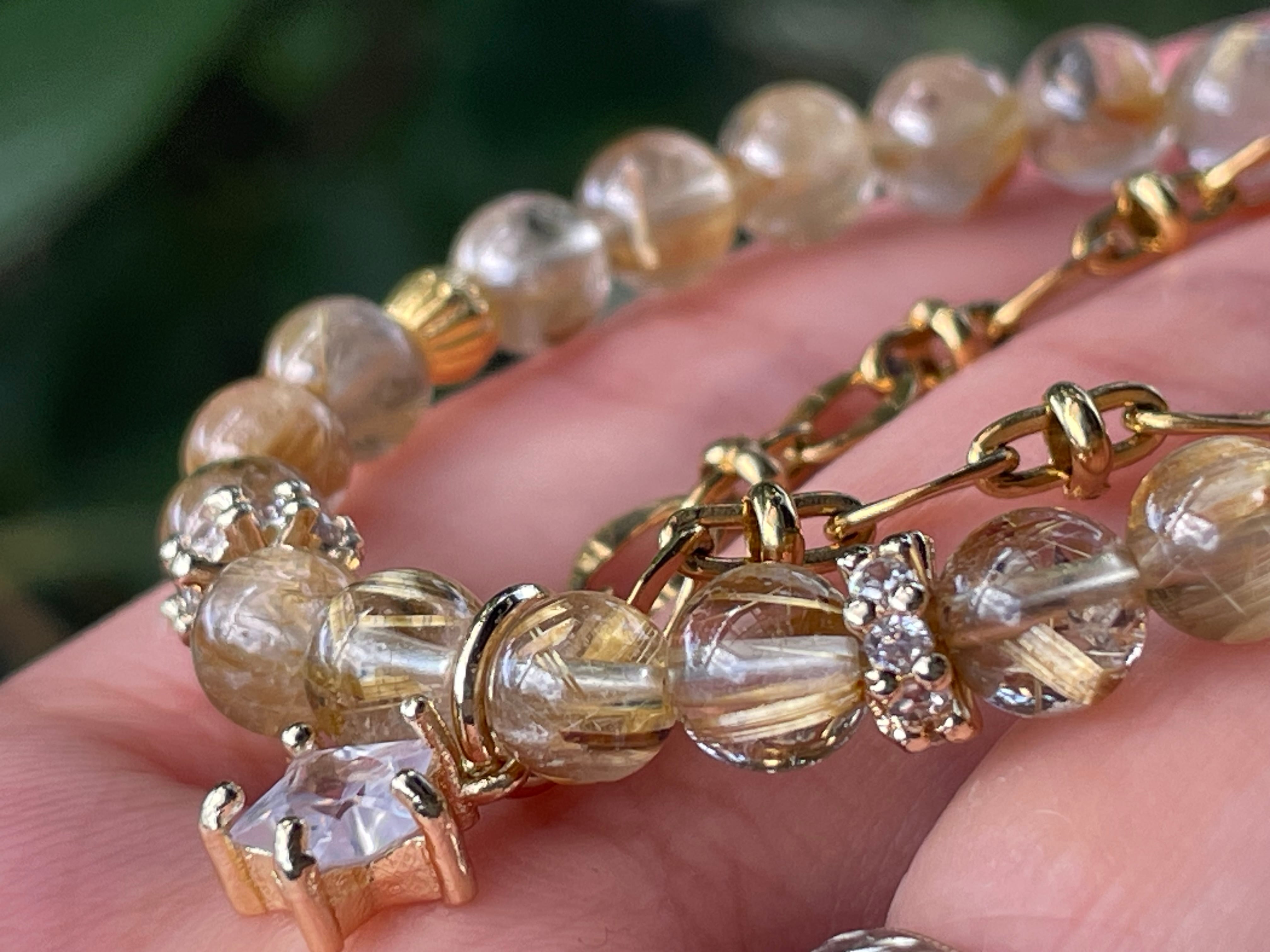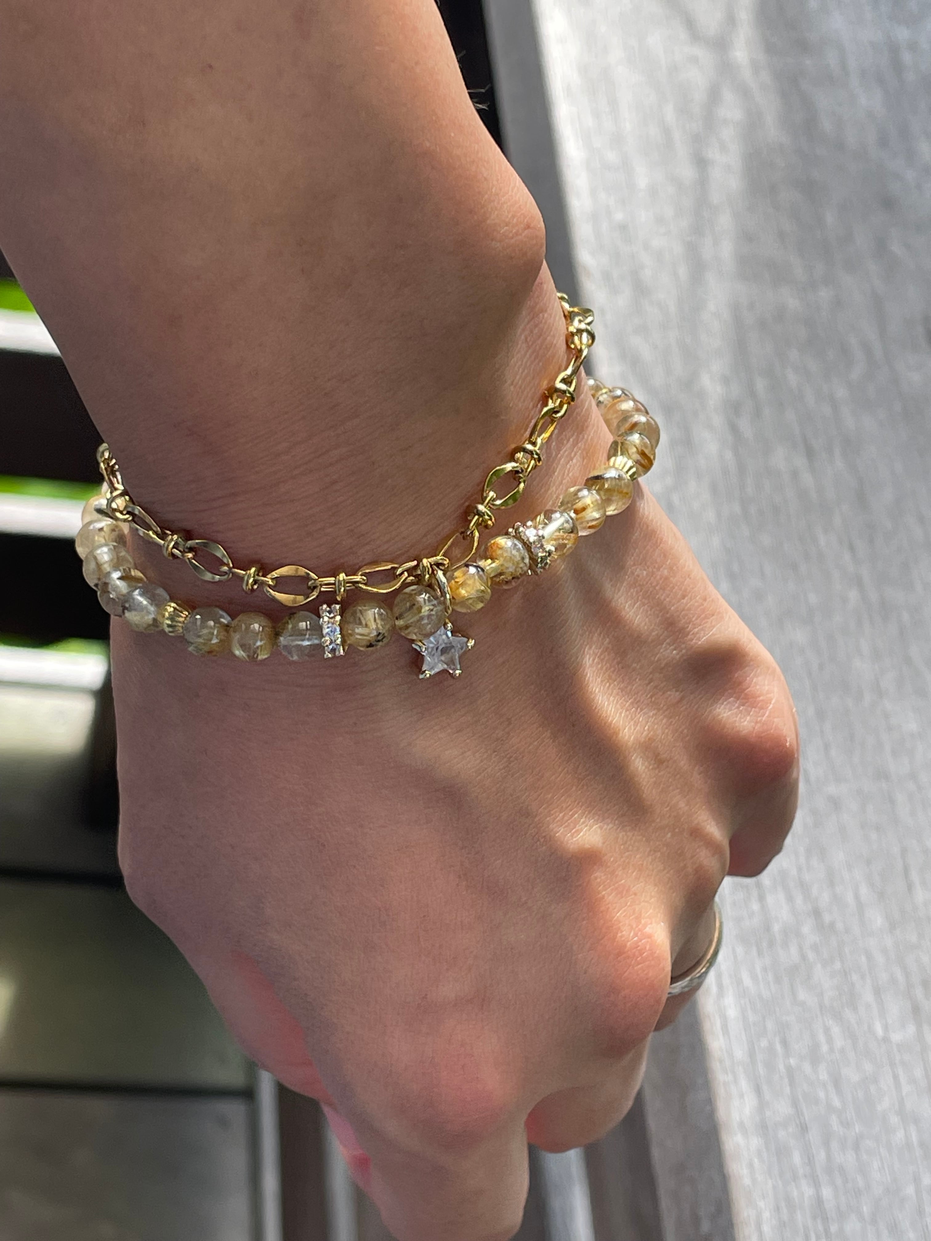 小粒のルチルとゴールドチェーンで、女性らしくデザインしました。