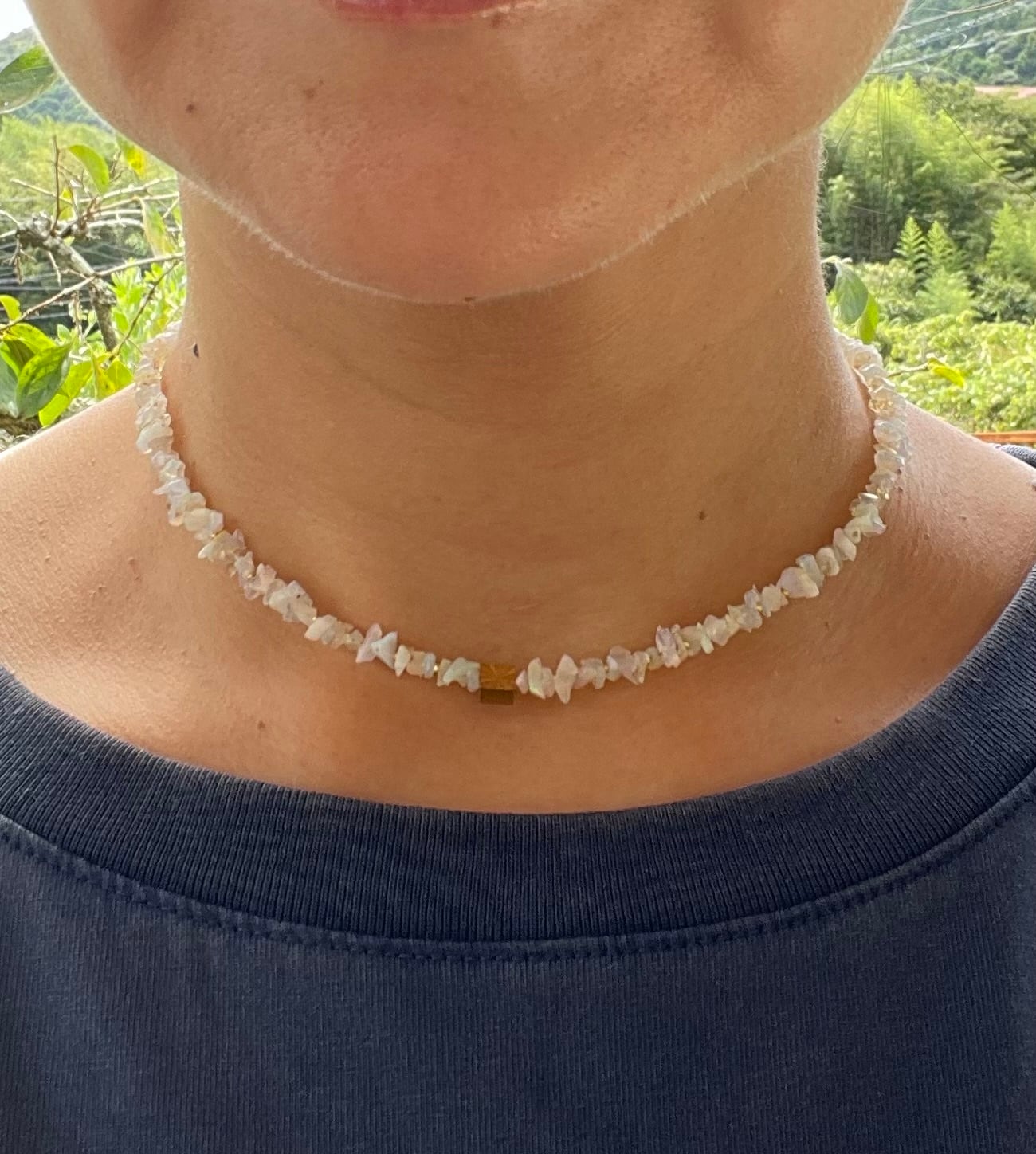 有色がキラキラと可愛いオパールのネックレス。シンプルで使いやすいデザインです。