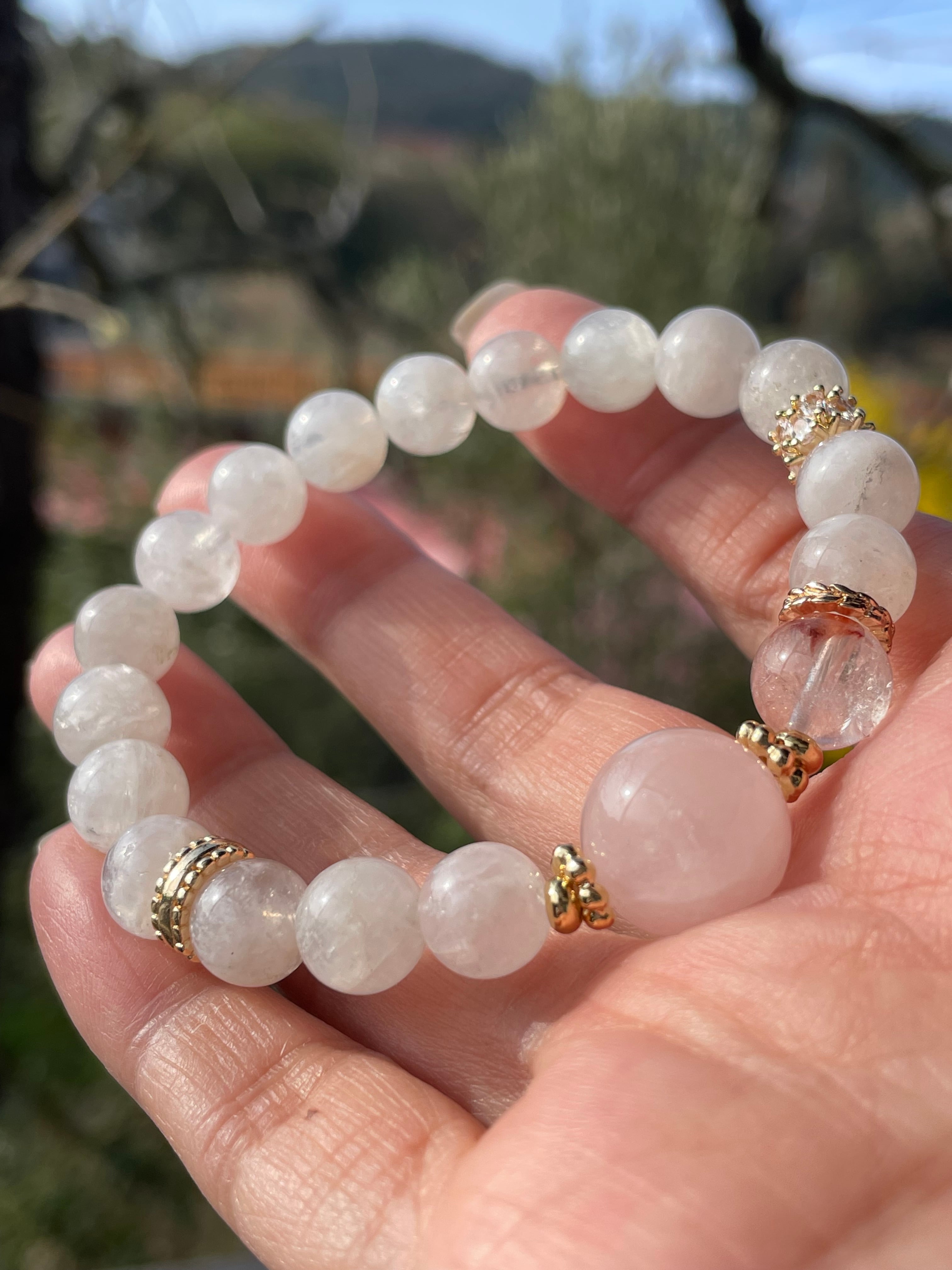 ローズクォーツとペリステライトのブレスレット。